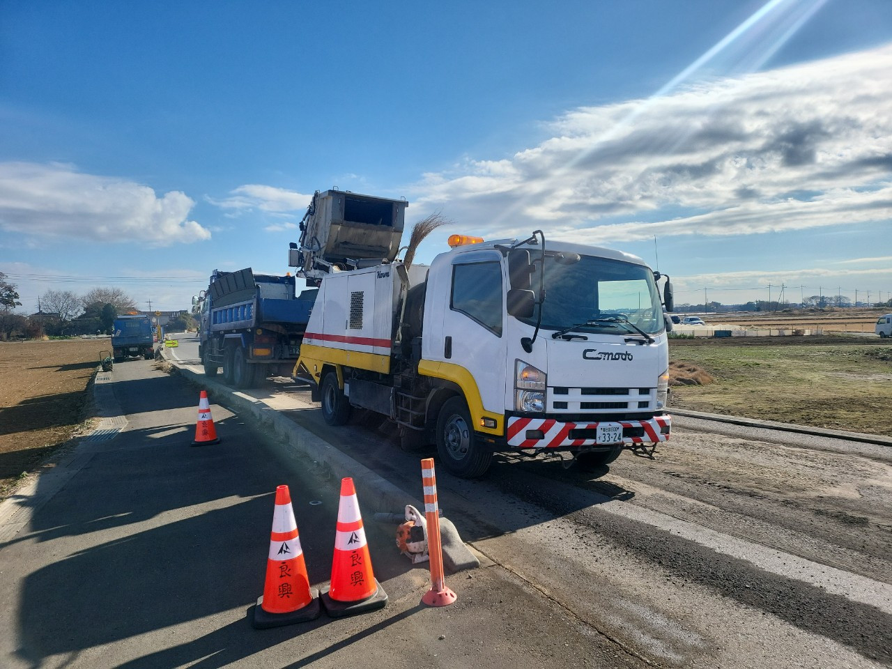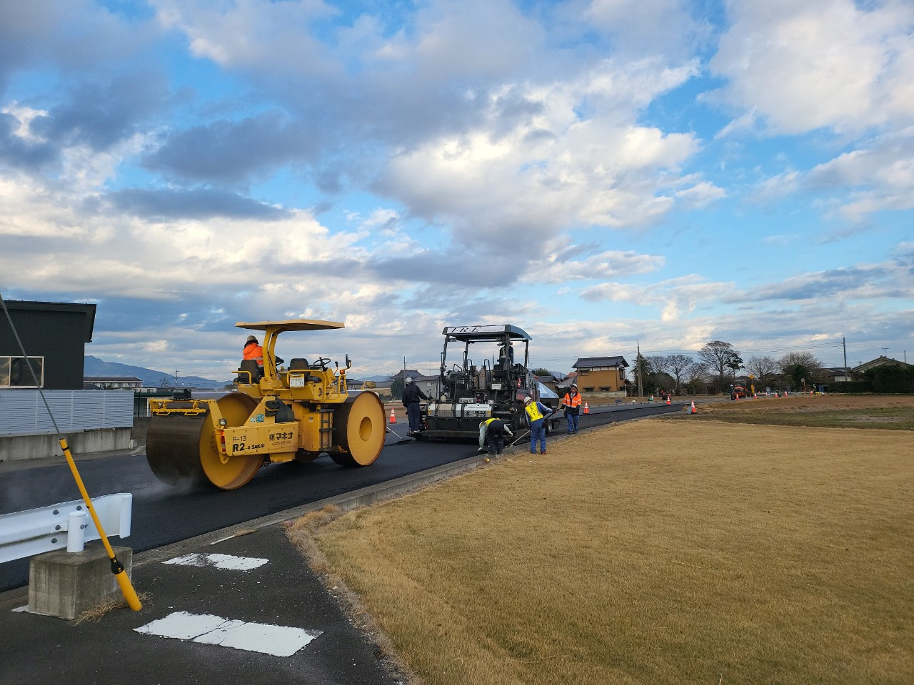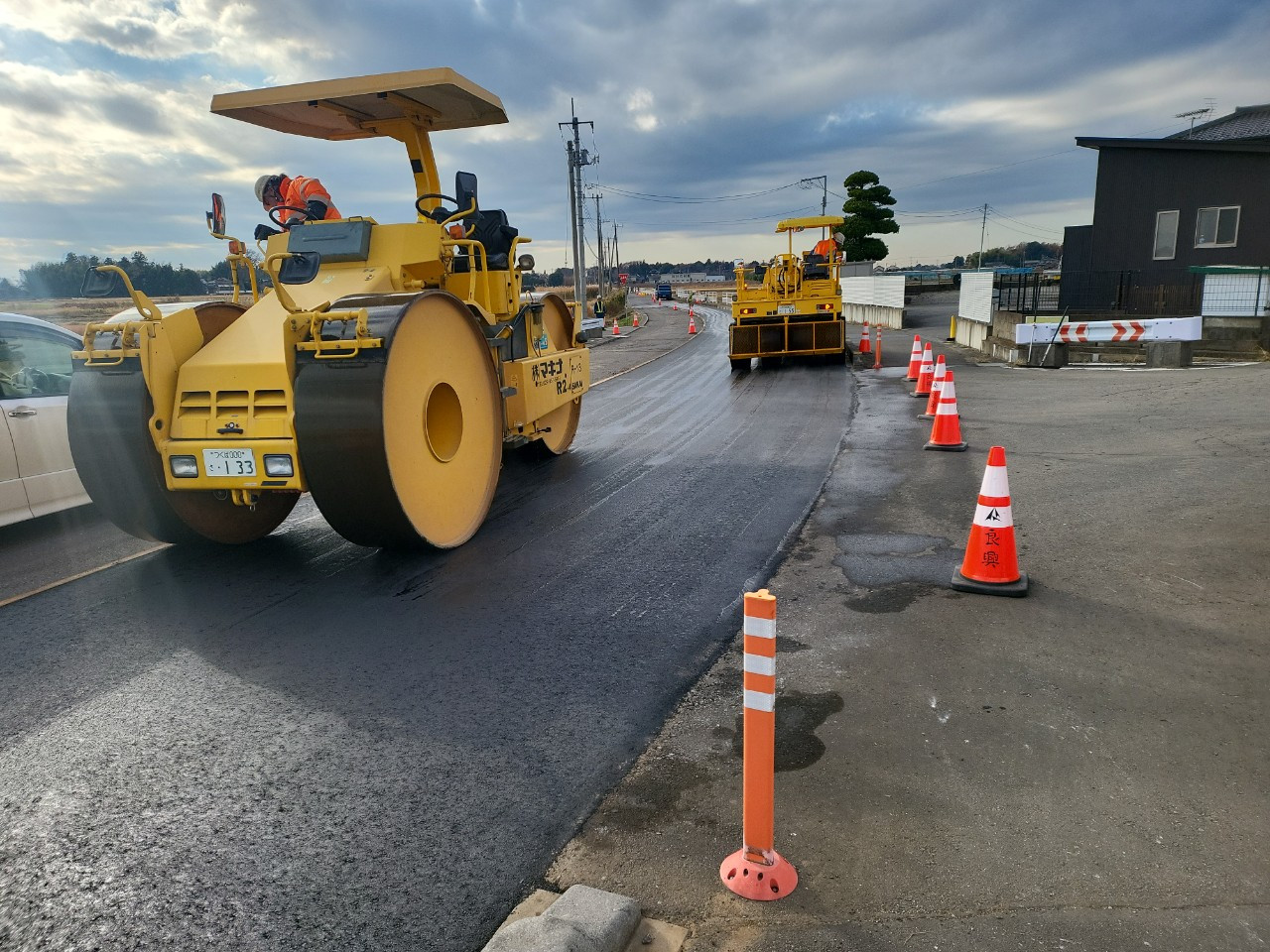 市道の舗装修繕工事です 2025.12.07| 新着情報, コラム 傷んだ舗装表面を削って、新しい舗装材で施工し直します。只今弊社では、一緒に働いてくれる仲間を募集しています。🙌まずはホームページからご連絡、お待ちしています。🙌